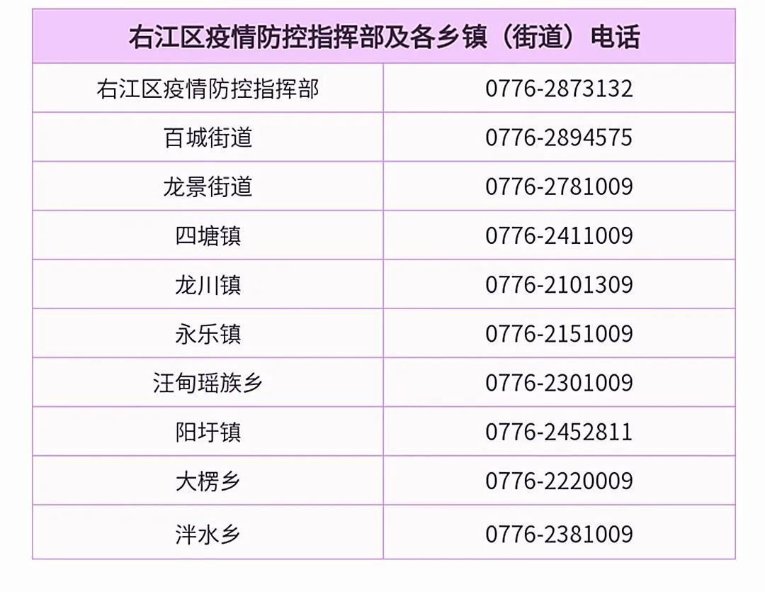 附件:右江区、各乡镇(街道)疫情防控指挥部联系电话