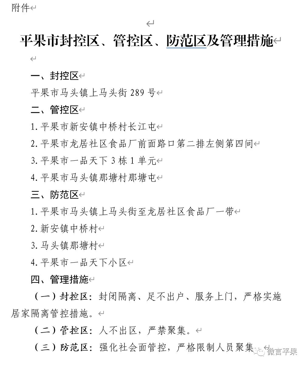 二、平果市除封控区、管控区、防范区外,其它区域可解除管控,转为常态化防控。