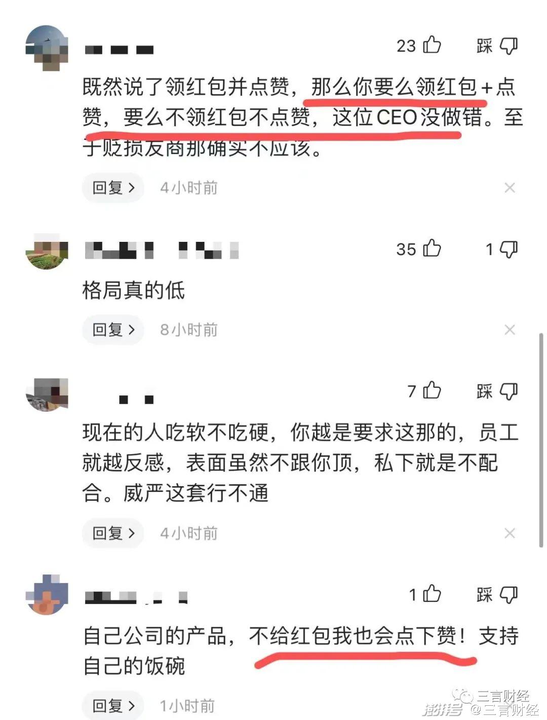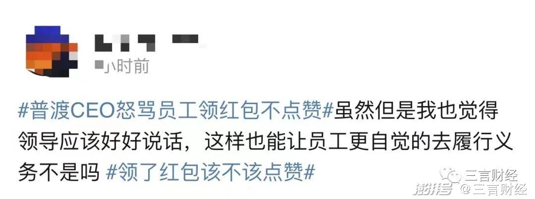也有网友认为普渡CEO的行为没有错,既然要求了领红包并且点赞,就应该领红包并且完成领导布置的任务;还有网友称自己公司的产品,即使不给红包也应该支持。