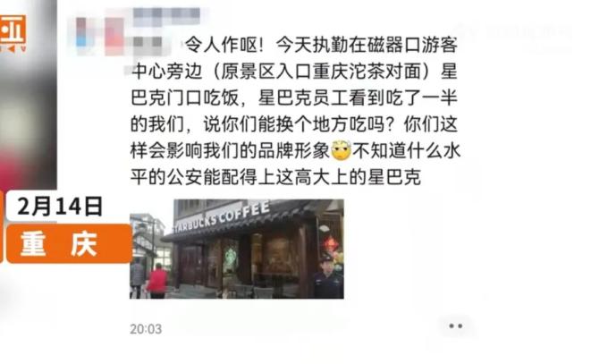 “星巴克驱赶门口用餐民警”