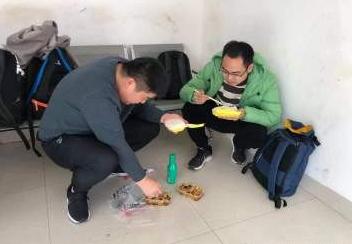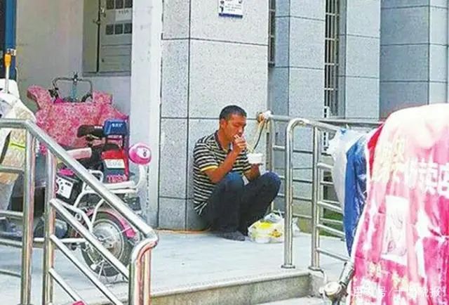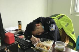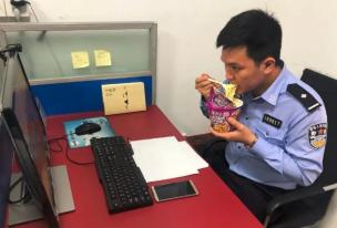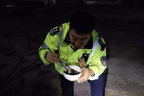 看到在门口吃饭的民警