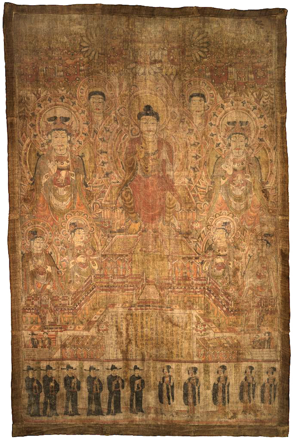 在前往敦煌的寻宝者中,斯坦因恐怕是最著名的一位,他在敦煌所获大多藏于大英博物馆。至今大英博物馆拥有敦煌相关文物一万多件,是世界上收藏敦煌文物最多的地方,其中珍贵者不可胜数。比如绢画药师净土图,属超大型敦煌遗画之一,为9世纪作品。然而与此相反的是,普通参观者在大英博物馆可以见到的敦煌文物寥寥可数,绝大部分文物都藏于库房。在博物馆举办的一些特展上,如2014年的“女史箴图与敦煌佛画”展中,参观者才有机会能够一睹真容。不过,大英博物馆已将其四百万多件藏品数字化,可在其官网上搜索关键字'dunhuang"。