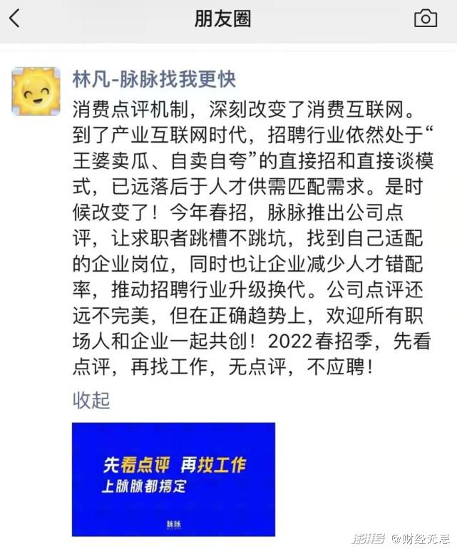 “中国版领英”脉脉显然认为自己找到了新出路了——这家已成立八年的互联网企业,最近宣布要进军招聘领域,创始人林凡前脚走出发布会,后脚就发朋友圈隔空怼“友商”。