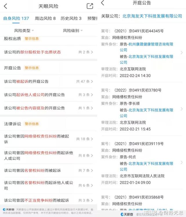 比如,我们在天眼查搜一下“脉脉”,发现这是一家官司缠身的公司,开庭案件排得满满的。