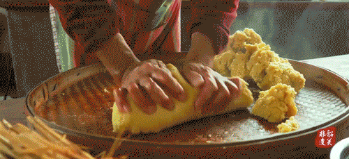 困难时期,肉是奢侈的,茄子、酸笋、辣椒、酸菜这些朴实的食材包入糯米皮中,捏成饺子的形状,金黄饱满,是大众化的小食品,千年来经久不衰。