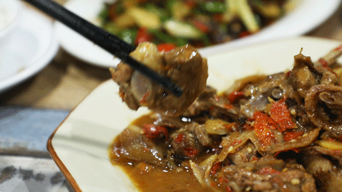 “梅岭鹅王”做好之后香味四溢,还没有端上桌,农家土鹅那种特有的香味就已经在空气中“放肆”了,只看外表,就已经吸引得大家口水流不停了。品尝一口鲜滑美味,堪比川菜和广西菜的麻辣味,着实让人回味无穷。02