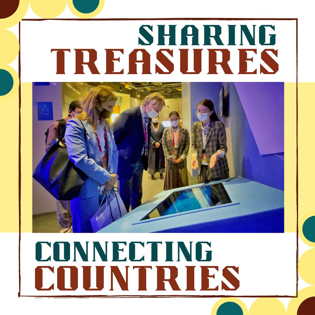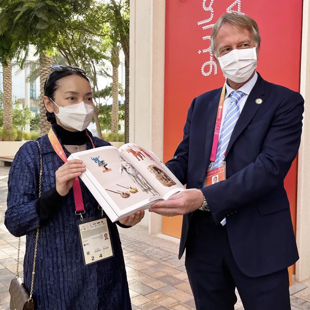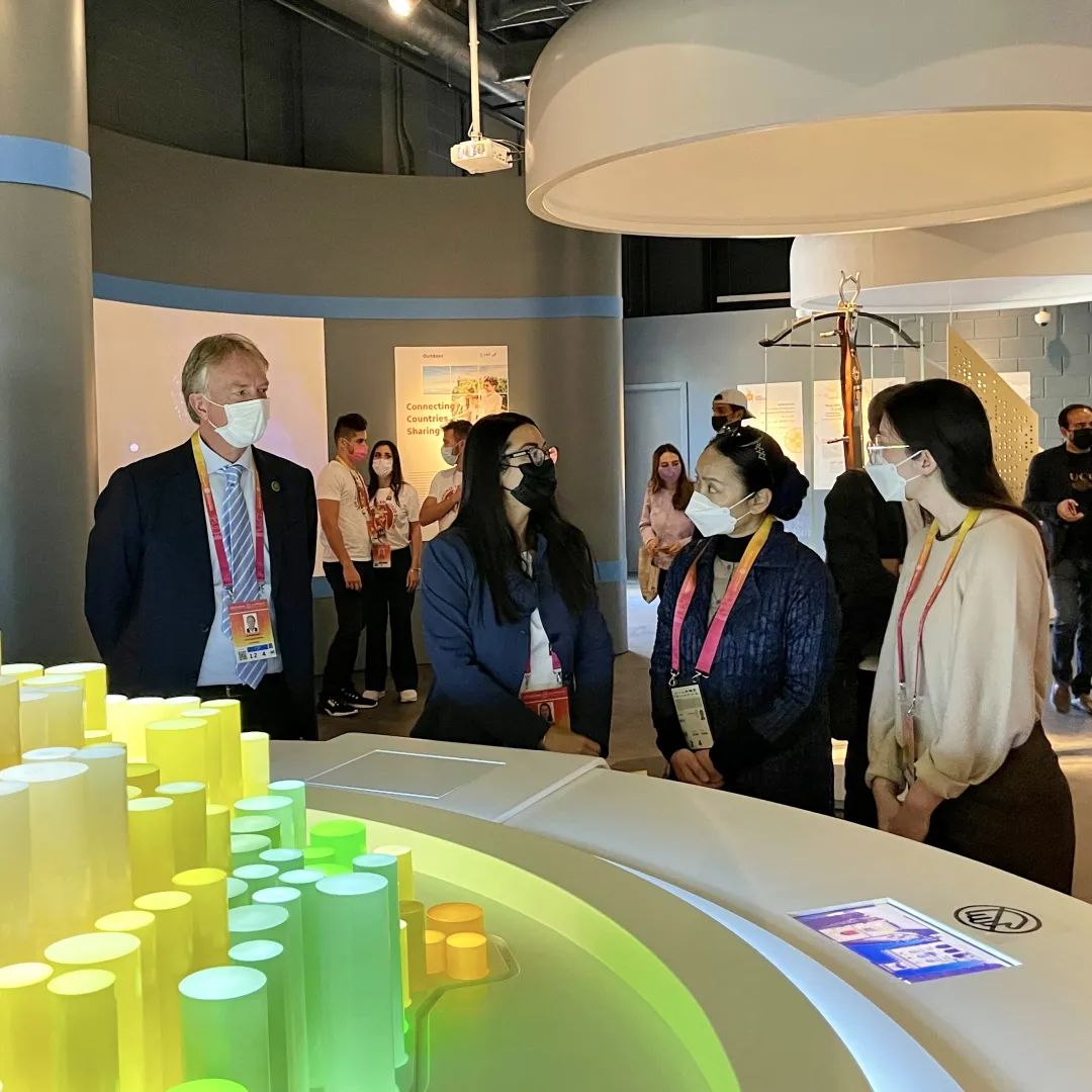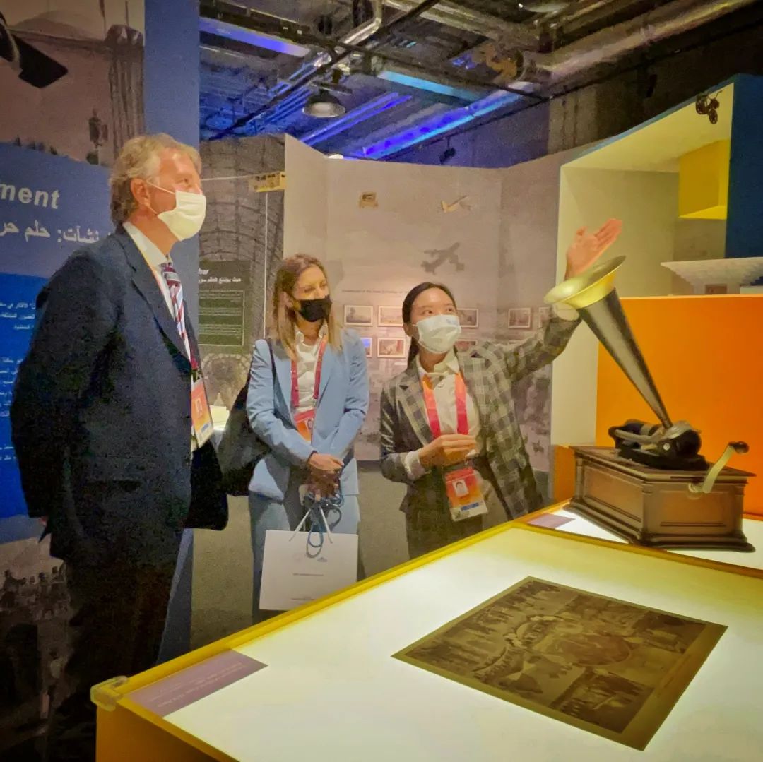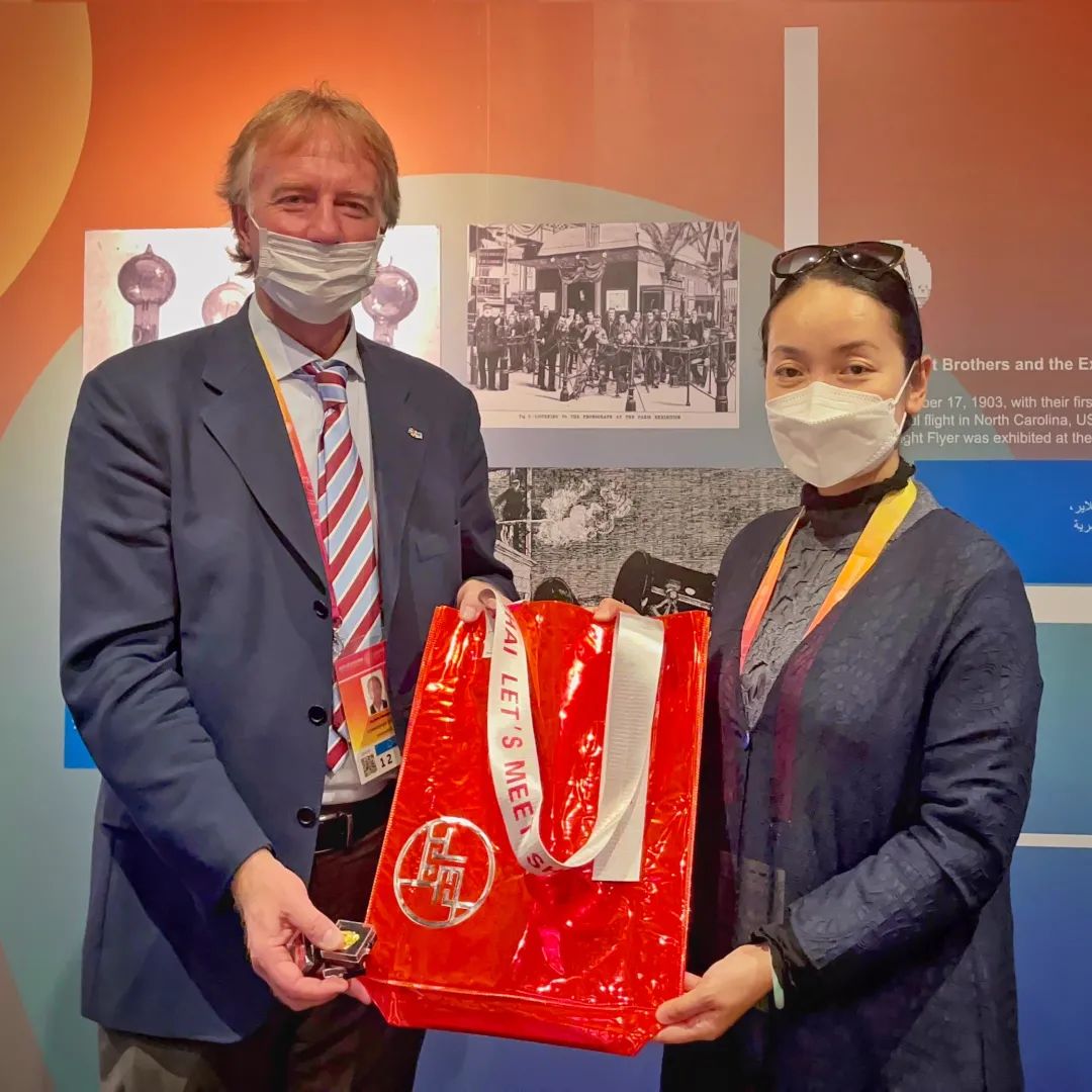 圣马力诺国家馆总代表 Filippo Francini 和公关、传播和社交媒体经理 Ilaria Brizi 参观了世博博物馆展馆。