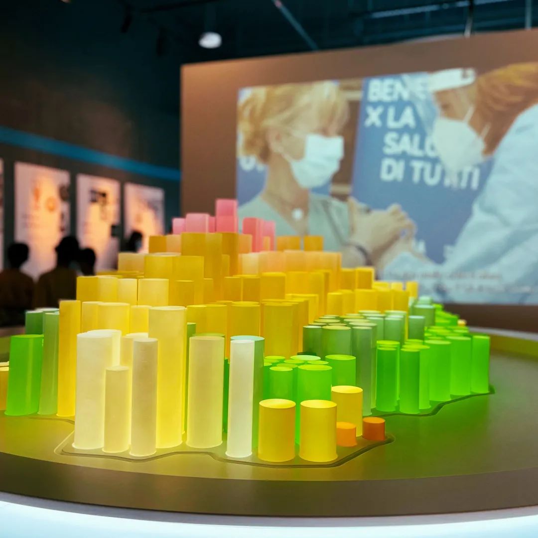 迪拜世博会圣马力诺国家馆由学生参与设计,展馆中央的多媒体互动桌由亚克力立方体构成,展现了圣马力诺蒂塔诺山的样貌。