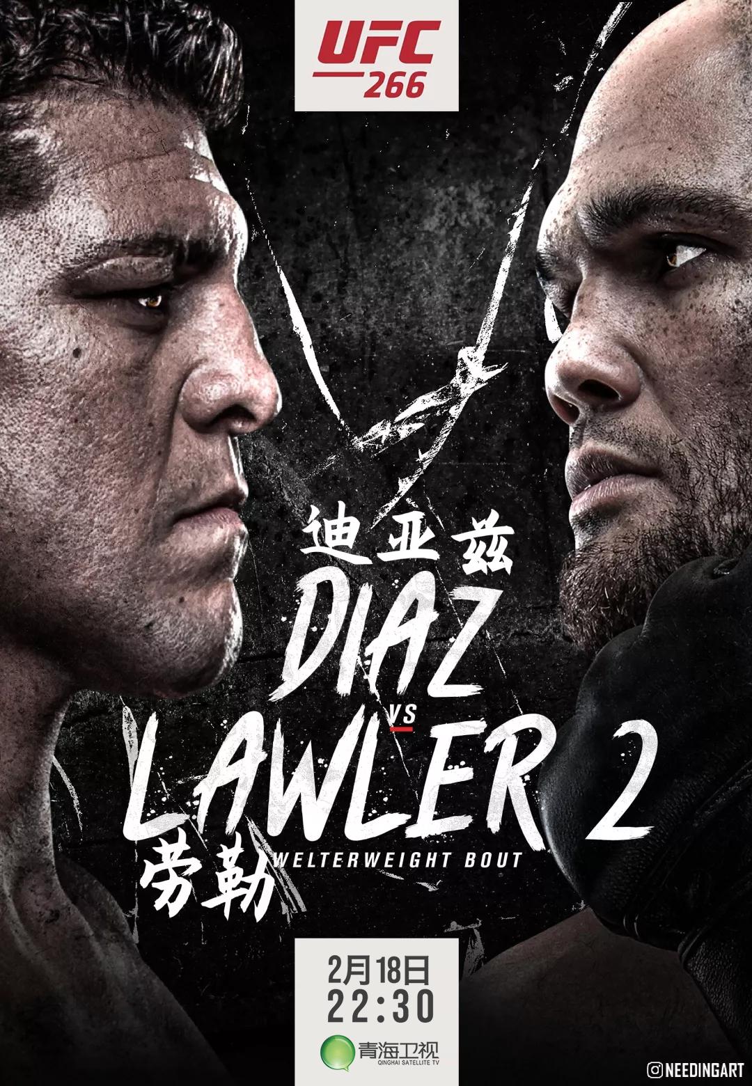 2022年2月18日 22:30,本期青海卫视《龙斗之UFC》将为大家带来UFC266期头条主赛,由沉寂多年复出归来的尼克-迪亚兹二番对阵前 UFC次中量级冠军罗比-劳勒。