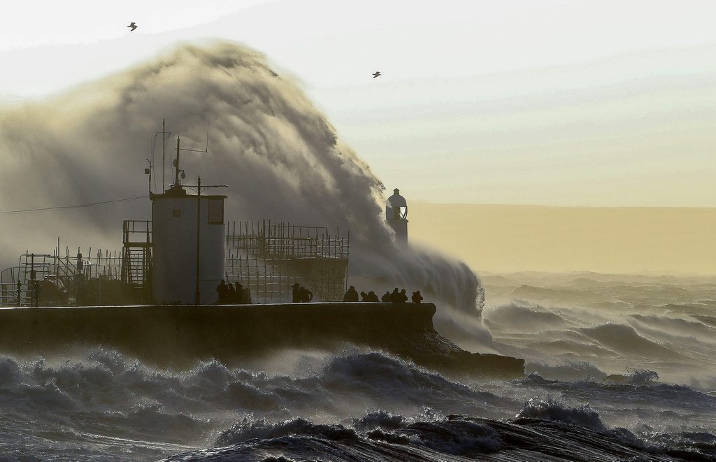 当地时间2022年2月18日,英国威尔士遭风暴袭击,海岸巨浪涌现。 视觉中国 图