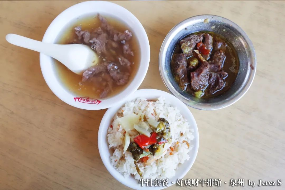 泉州的牛排馆极多,小街巷里处处都有牛排馆的招牌,光在市区就有上百家,其中百年老字号更是不少。菜品里,除了红烧的中式牛排,还有牛肉羹、牛杂汤、牛鞭汤等各种有关牛肉的菜色,简直是牛肉爱好者的天堂。