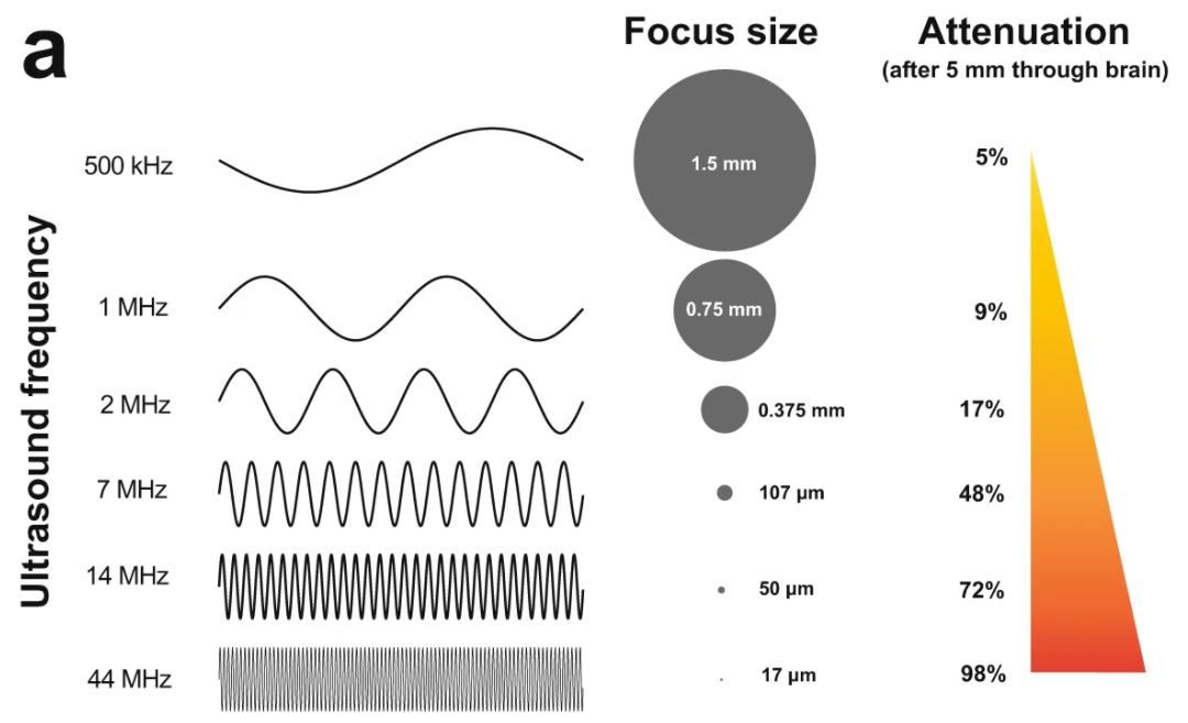 他们首先确定了目标的超声频率。低频超声虽然穿透生物组织的能力更强,但是聚焦能力比较差,很难精准地靶向特定的大脑区域。