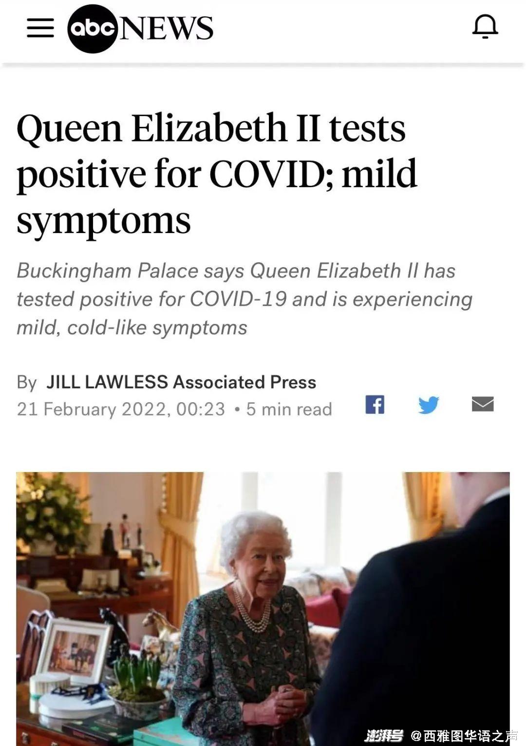 4、英国女王新冠检测呈阳性 症状轻微,将继续工作
