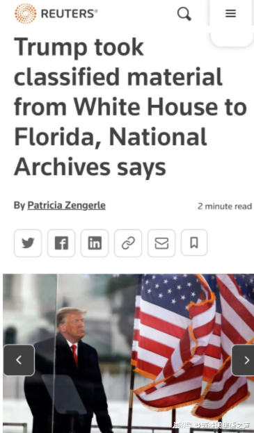 5、美国档案局证实:特朗普卸任后将国家机密文件带回佛州家中
