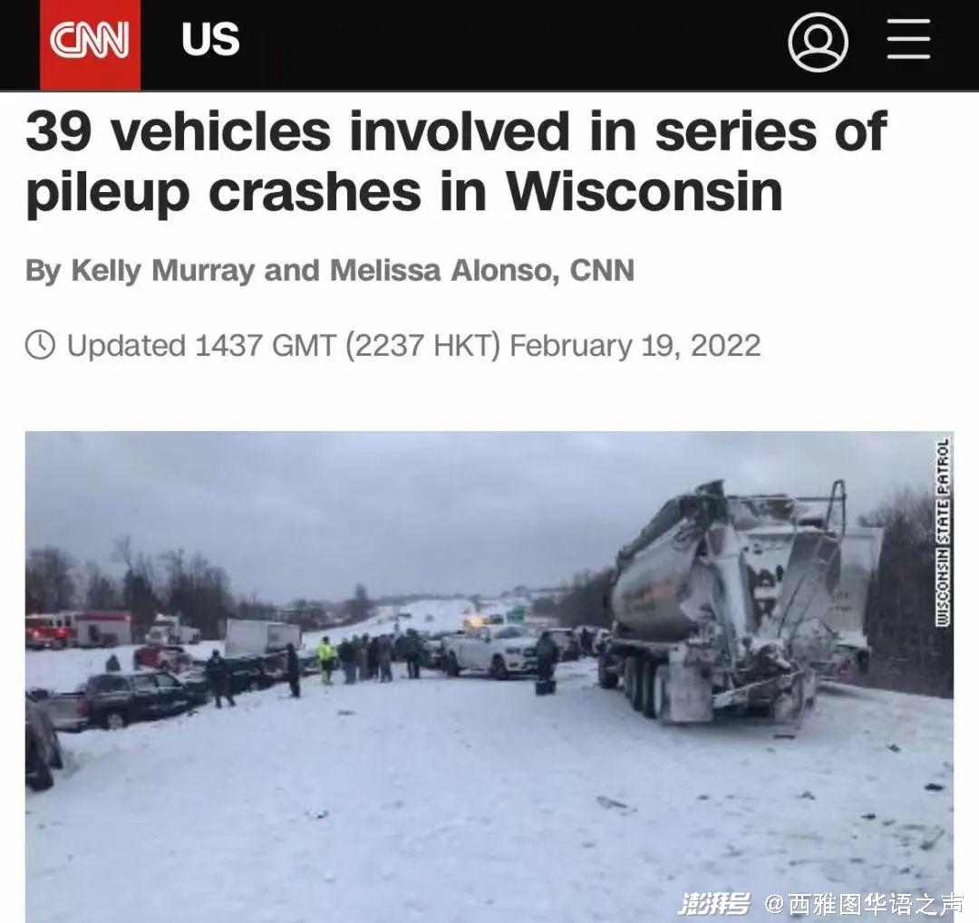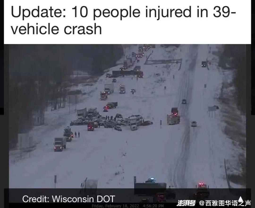 9、美国威斯康星州39辆车连环相撞 致10人受伤