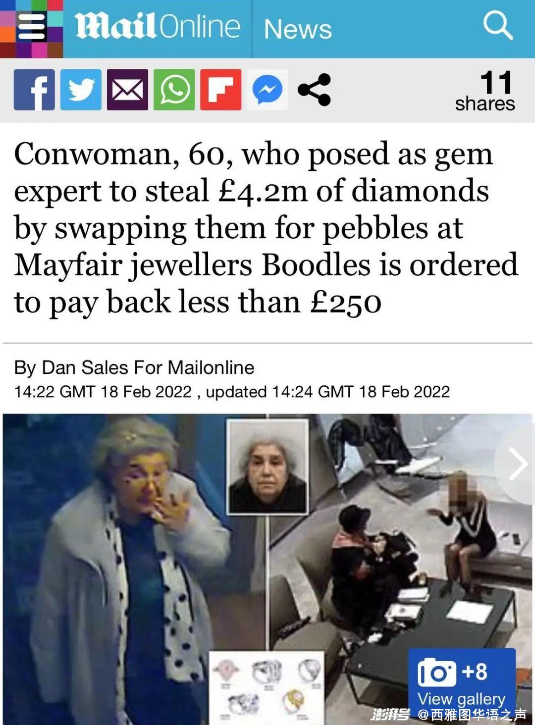 【每日邮报】英国一名60岁的女子璐璐-拉卡托斯于2016年偷了价值420万英镑的钻石,这是英国历史上最大的盗窃案之一。近日,法官竟然裁定她只要还245英镑即可。