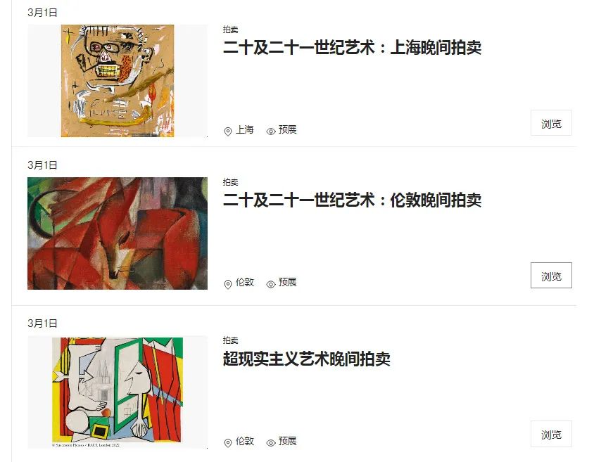 苏富比、佳士得、富艺斯等多家拍行为备战即将到来的3月伦敦“现当代艺术周”带来了诸多尖儿货,让人眼前一亮。从崭新的销售模式到极具话题性的明星拍品,从印象派艺术家的创新到今天的艺术杰作,跨越了19世纪末-20世纪的主要艺术运动,莫奈、毕加索、马格利特、班克斯等艺术家都有品质不错的作品现身拍场。而愈发多元的拍品构成,也反映出今天藏家更加多元的收藏喜好。◆佳士得伦敦3月拍卖重要场次◆