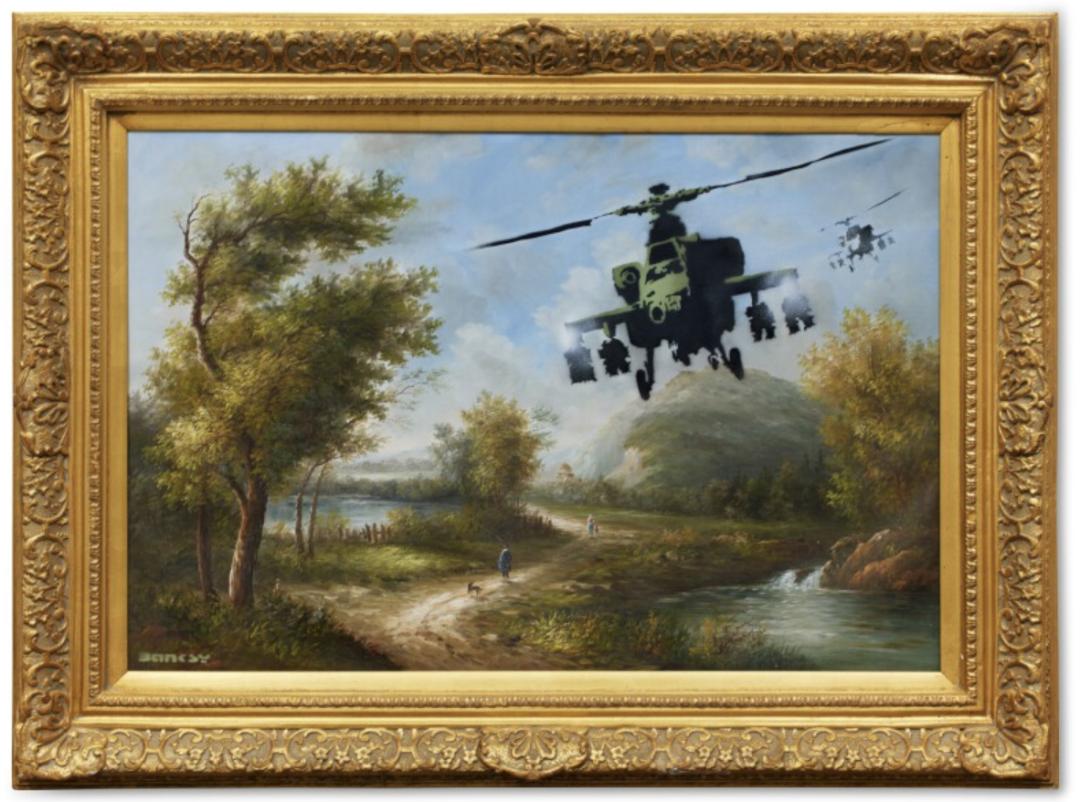 班克斯《恶搞油画(直升机)》油彩及喷漆画布,2005年作