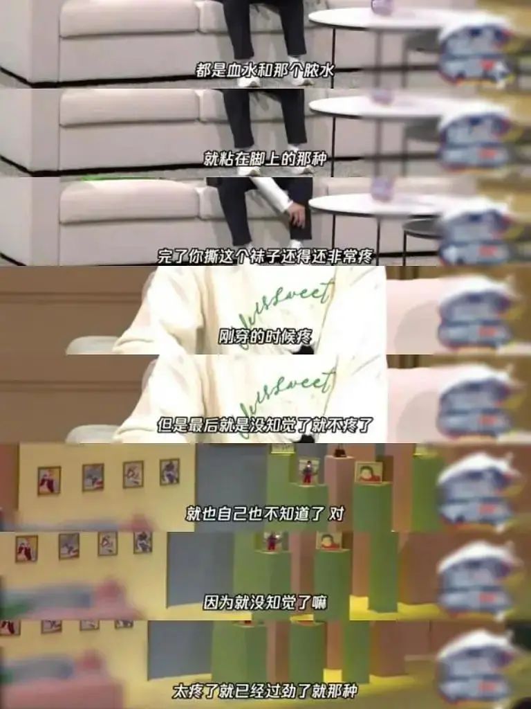 每天脚疼到哭,去医院了才发现踝骨都硌碎了,袜子从脚上撕下来 全都是血水和脓水,疼过劲儿,没知觉,就好了。