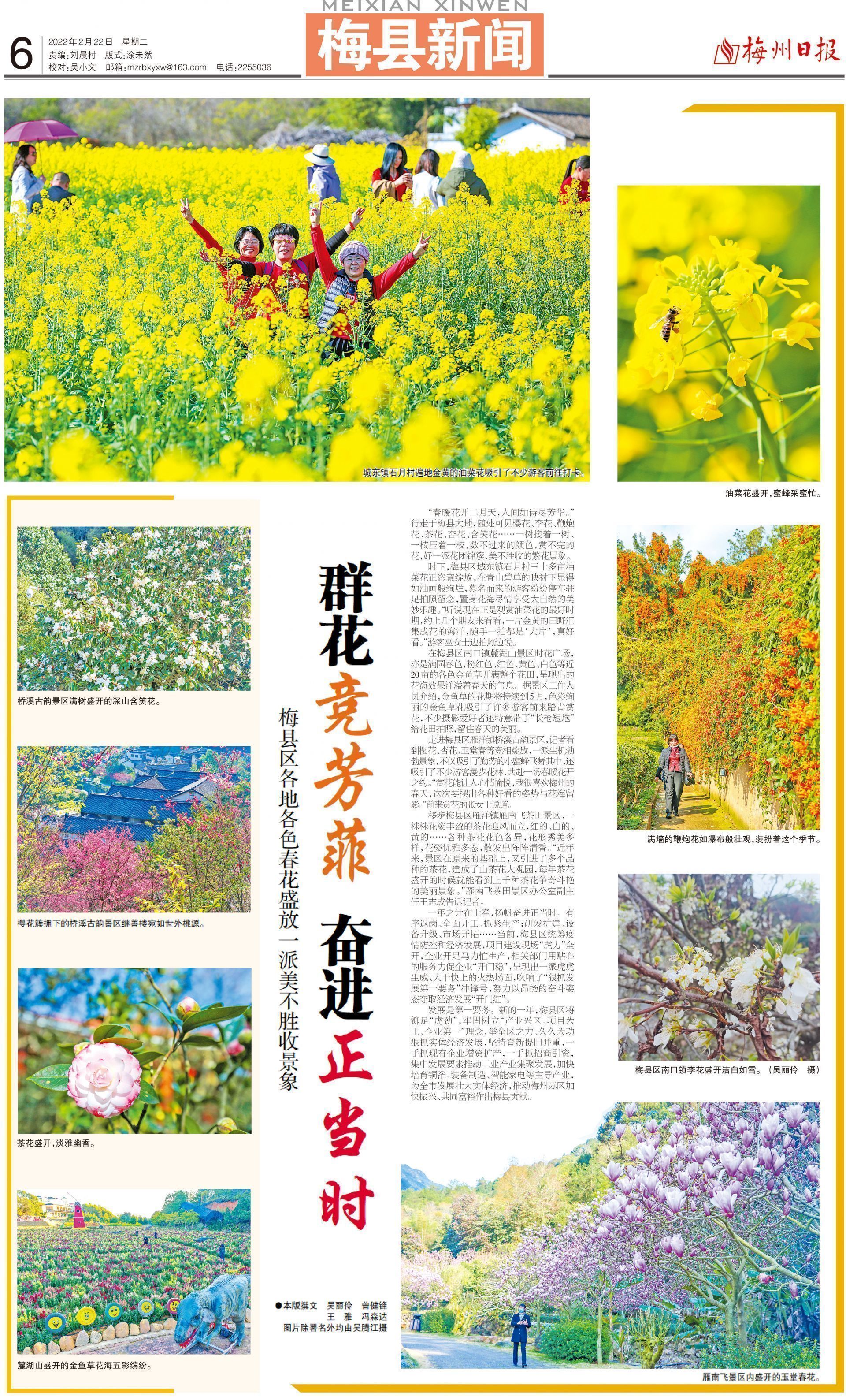 “春暖花开二月天,人间如诗尽芳华。”行走于梅县大地,随处可见樱花、李花、鞭炮花、茶花、杏花、含笑花……一树接着一树、一枝压着一枝,数不过来的颜色,赏不完的花,好一派花团锦簇、美不胜收的繁花景象。