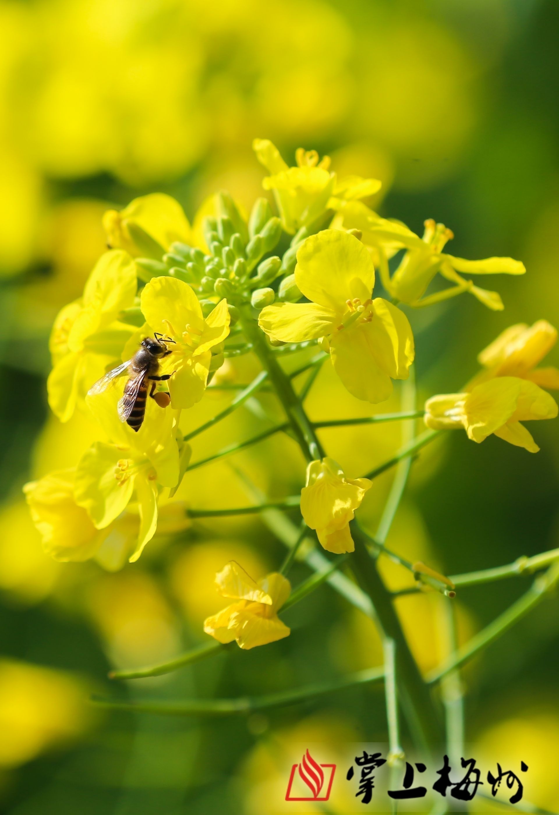 △油菜花盛开,蜜蜂采蜜忙。
