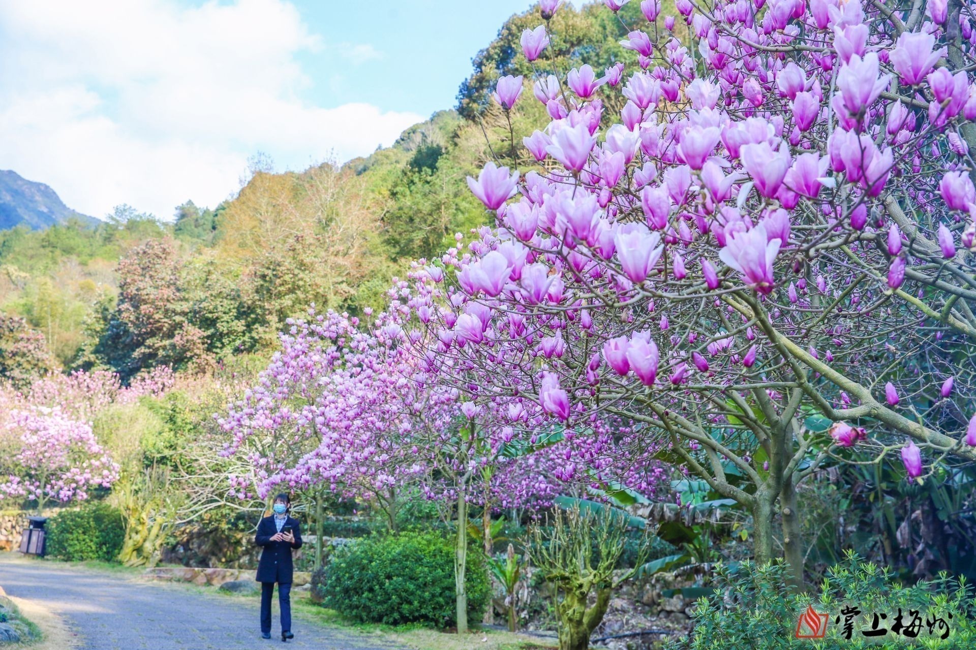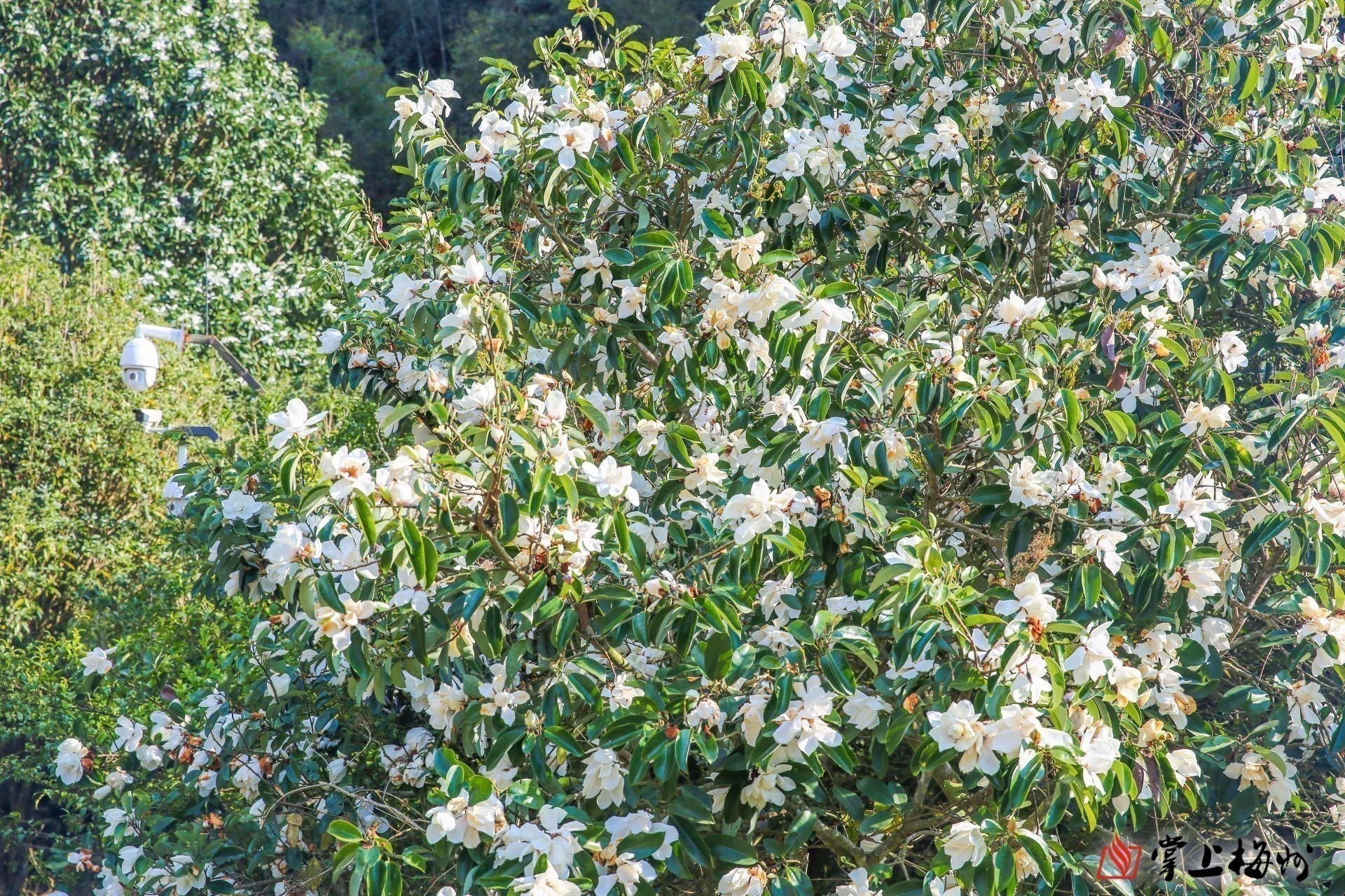 △桥溪古韵景区满树盛开的深山含笑花。