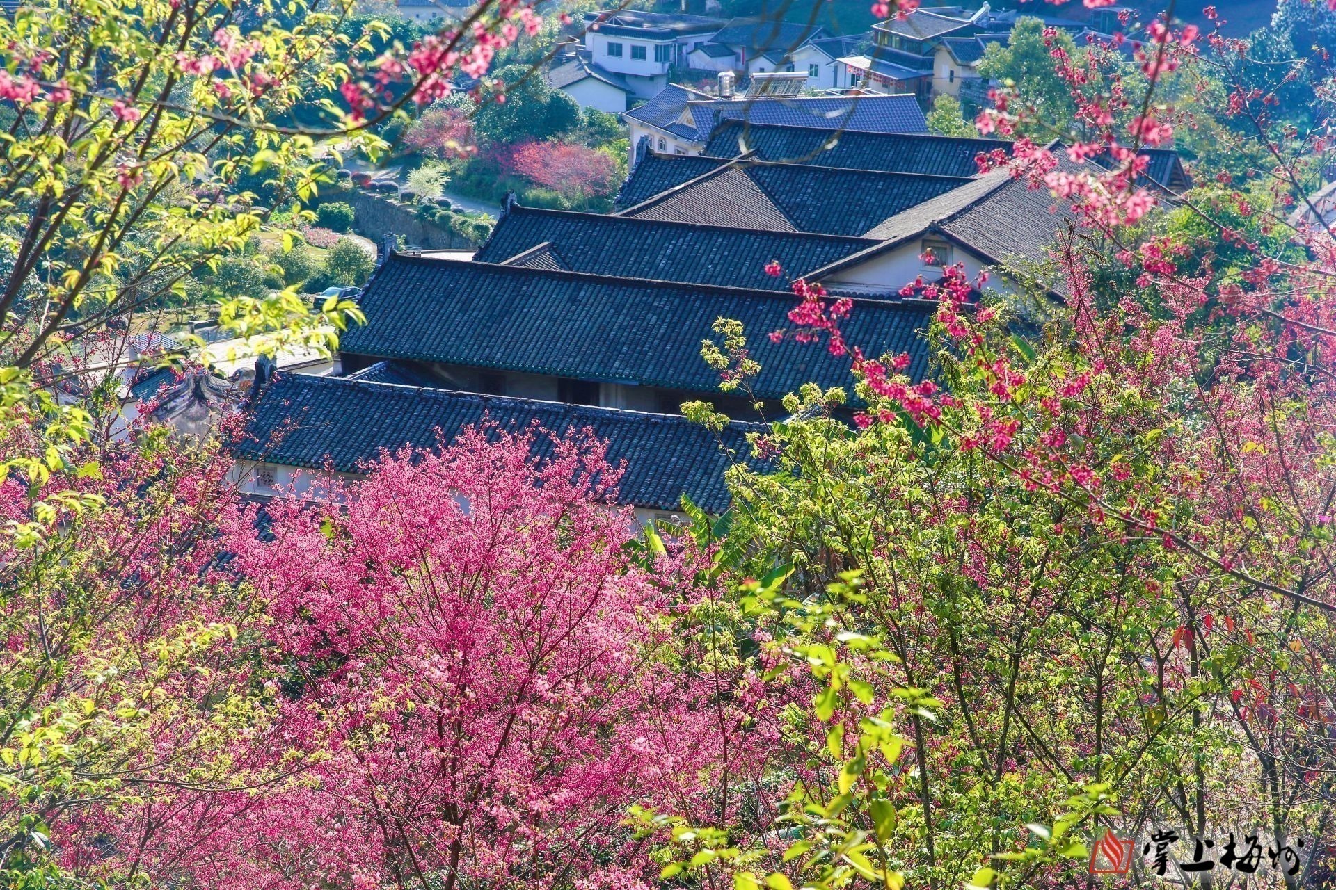 △樱花簇拥下的桥溪古韵景区继善楼宛如世外桃源。