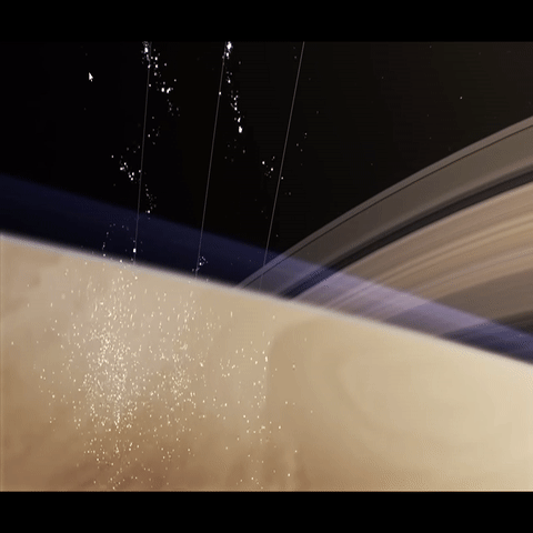 土星上的雨和我们地球上的可不一样,光环雨是从光环落向土星大气的物质流。环中的物质怎么会向土星掉落呢?原本,光环的组成颗粒在固定的轨道上环绕土星运行,在土星的引力和轨道离心力间保持着平衡状态。但是受到太阳紫外线辐射和微流星体撞击的影响,环上的水冰和岩石颗粒开始不断你碰我,我撞你。这么一“打架”,就会被打破星环原有的受力平衡。然后这些颗粒感受到土星磁场的吸引,便会在引力作用下坠向土星。