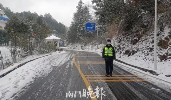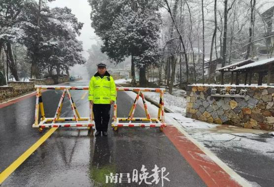 南昌交警提醒广大市民:蛟万公路前往梅岭方向下雪,路面有积雪,属地已实行禁止通行管制;