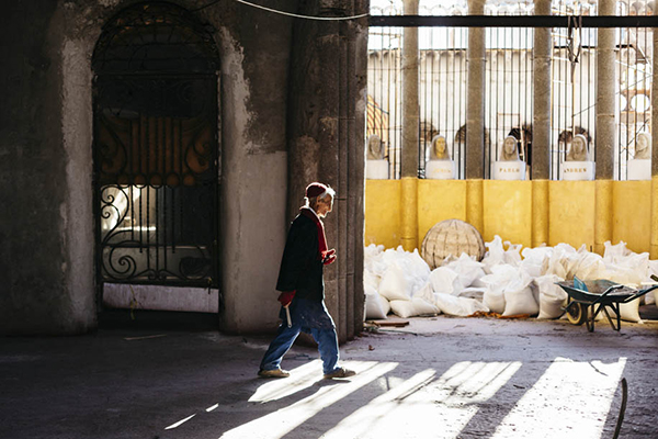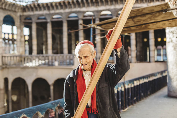 虽然,有时会有志愿者帮助,但是绝大部分时间都是老修士一力承担。他买不起大型工具,在没有吊车和起重机的情况下,无论材料有多重、位置有多高,全靠人工如蚂蚁搬家般一点点挪上去。