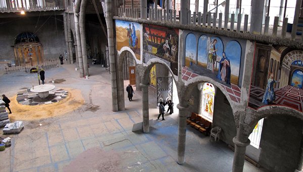 这位顽强的老人几乎独自一人完成了所有工程,整个教堂的建筑占地面积约8000平方米、高约40米、拥有1座穹顶、2座高塔、26道拱门。