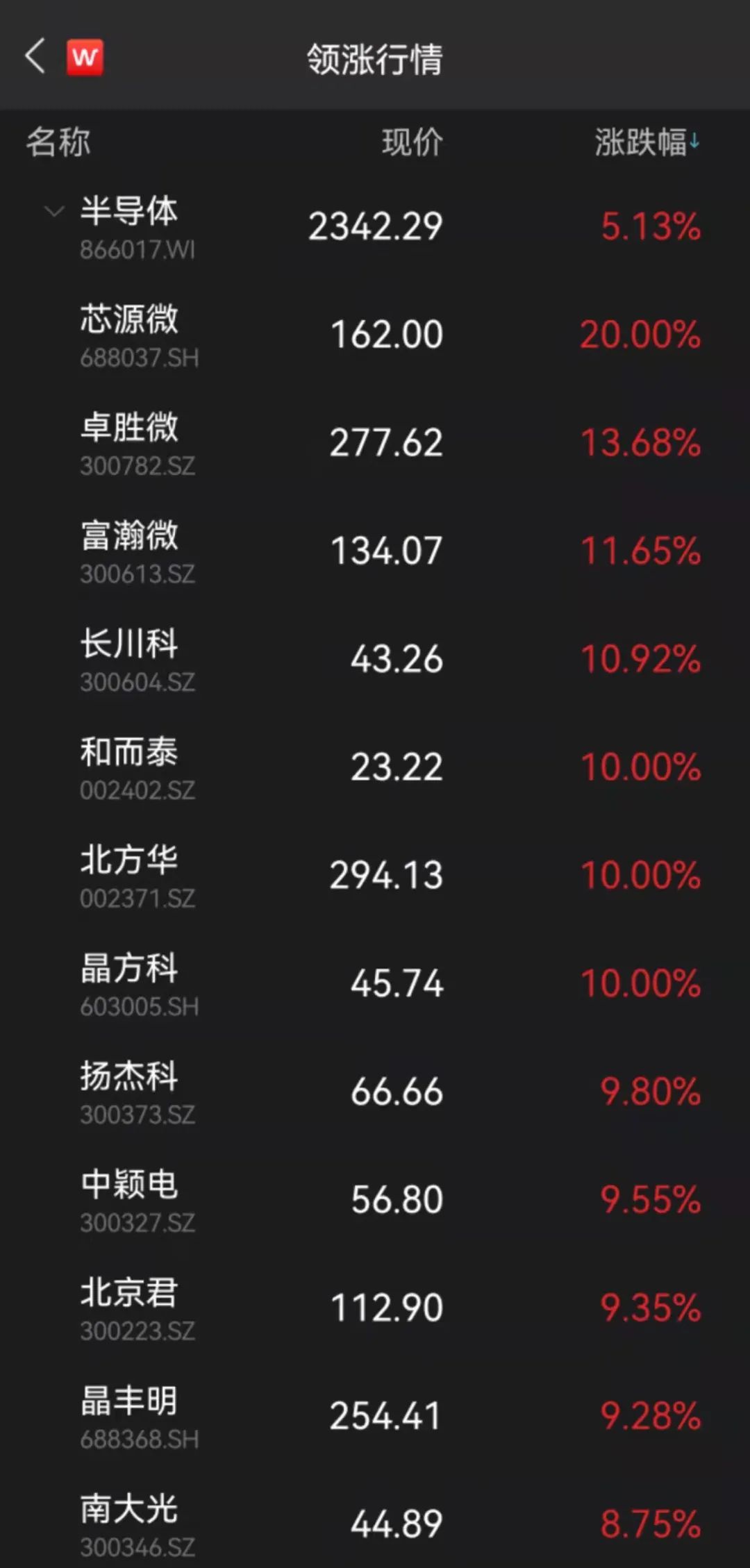芯片、半导体等科技题材大爆发,千亿巨头北方华创涨停,江丰电子、芯源微20%涨停,芯源微、盛美上海、富瀚微、卓胜微、天岳先进等涨停或涨逾10%。