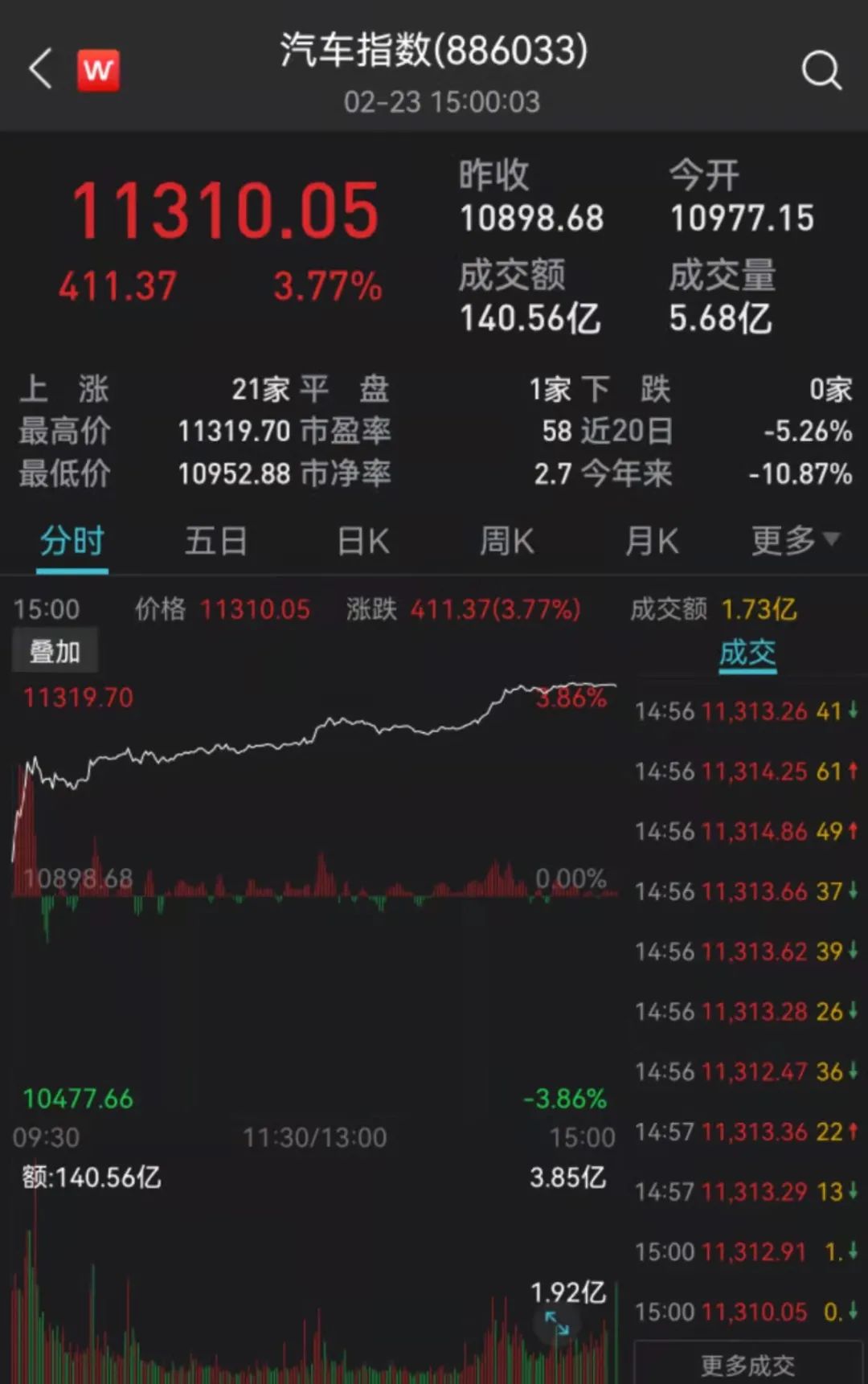 汽车指数上涨近4%,江淮汽车大涨超7%,比亚迪大涨6%。