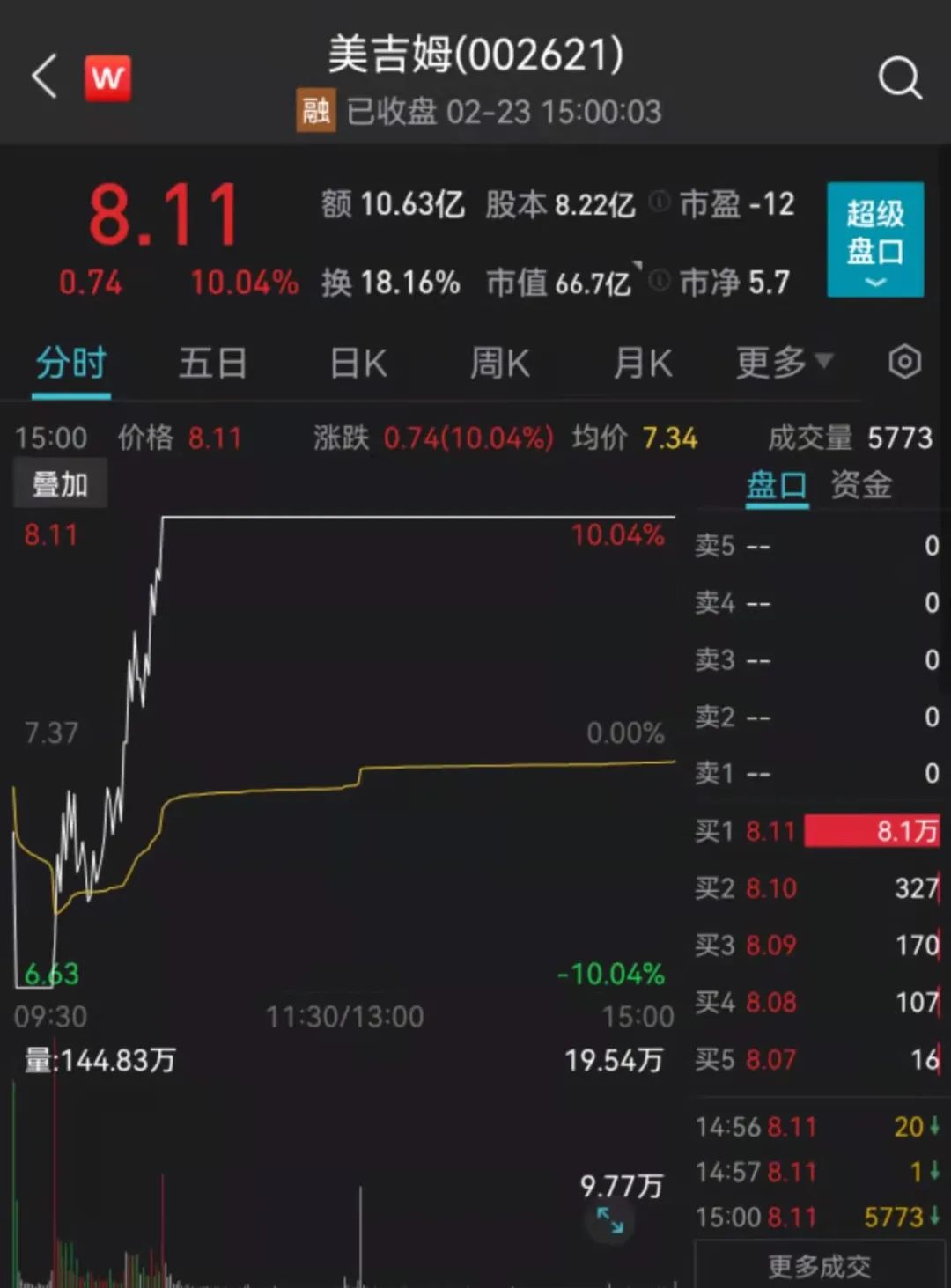 其中,美吉姆上演地天板,收盘价8.11元,该股14个交易日已经出现10个涨停。