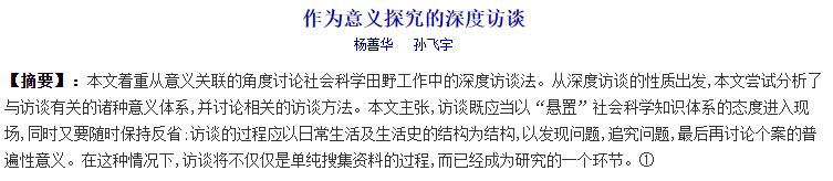 当然我也参考了很多的文献,其中有一篇就是杨善华和孙飞宇写的《作为意义探究的深度访谈》,我也特别希望能够分享给你。