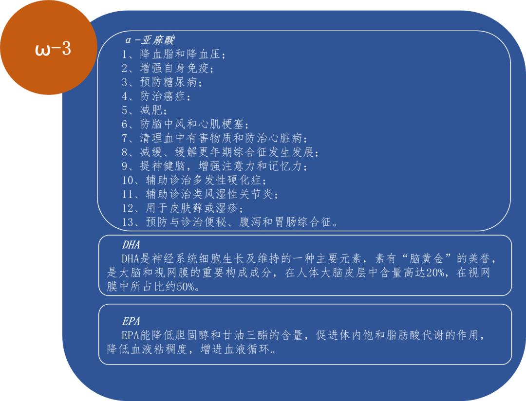 ω-6和ω-3作为人体的必须脂肪酸,不仅仅是用来提供能量或储存能量的物质,它们还具有生物活性,在调节血脂、改善血液微循环等方面发挥重要作用。此外,ω-6具有一定的促炎作用,ω-3具有一定的抗炎作用。结合既往的研究结果,美国食品药物监督管理局(FDA)确认PUFA具有多种功能(图2)。