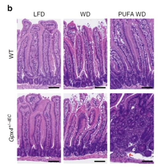 [5]Mayr L,Grabherr F,Schwärzler J,Reitmeier I,Sommer F,Gehmacher T,Niederreiter L,He GW,Ruder B,Kunz KTR,Tymoszuk P,Hilbe R,Haschka D,Feistritzer C,Gerner RR,Enrich B,Przysiecki N,Seifert M,Keller MA,Oberhuber G,Sprung S,Ran Q,Koch R,Effenberger M,Tancevski I,Zoller H,Moschen AR,Weiss G,Becker C,Rosenstiel P,Kaser A,Tilg H,Adolph TE.Dietary lipids fuel GPX4-restricted enteritis resembling Crohn's disease.Nat Commun.2020 Apr 14;11(1):1775.doi:10.1038/s41467-020-15646-6.PMID:32286299;PMCID:PMC7156516.