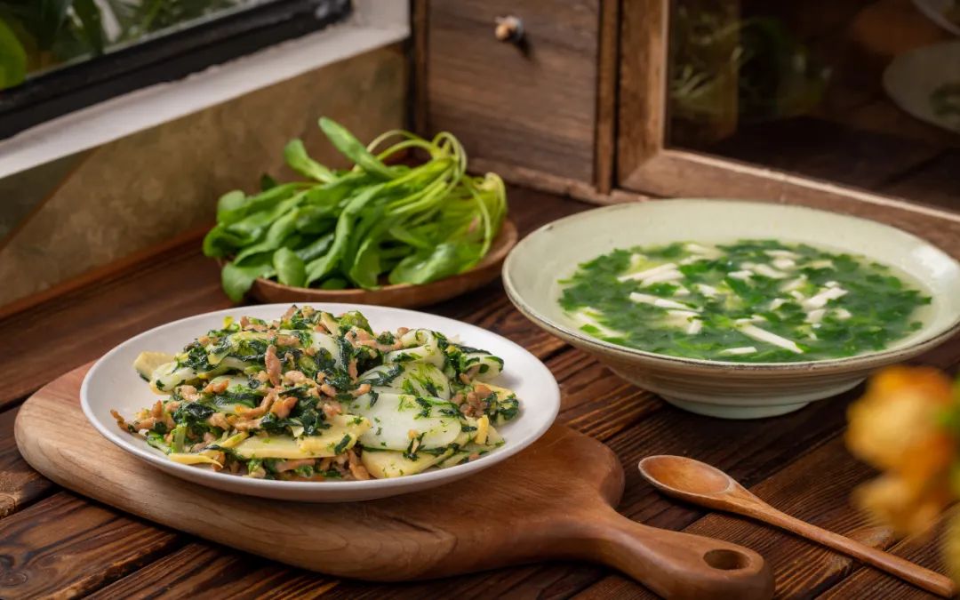 荠菜到了潮汕,他们会做成七宝羮。七宝羮有祈福纳祥寓意。将荠菜、韭菜、芹菜、芥兰等7种蔬菜炒软后加水煮沸,清新爽口,清胃又提神。