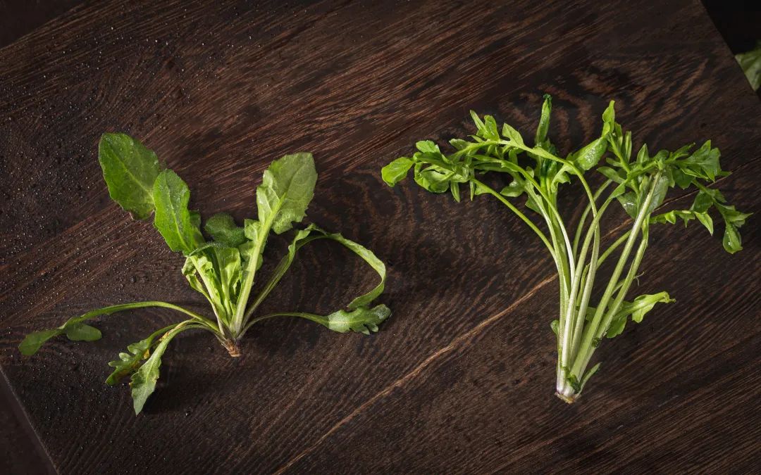 左边是市场购买,右边是超市购买超市里的“养殖荠菜”和“野生荠菜”对比,个头较为粗壮,叶片凌乱且肥大,超市购买的荠菜在口感上总是少了一股春天野菜的鲜灵劲儿,荠菜的香气也不够浓郁。