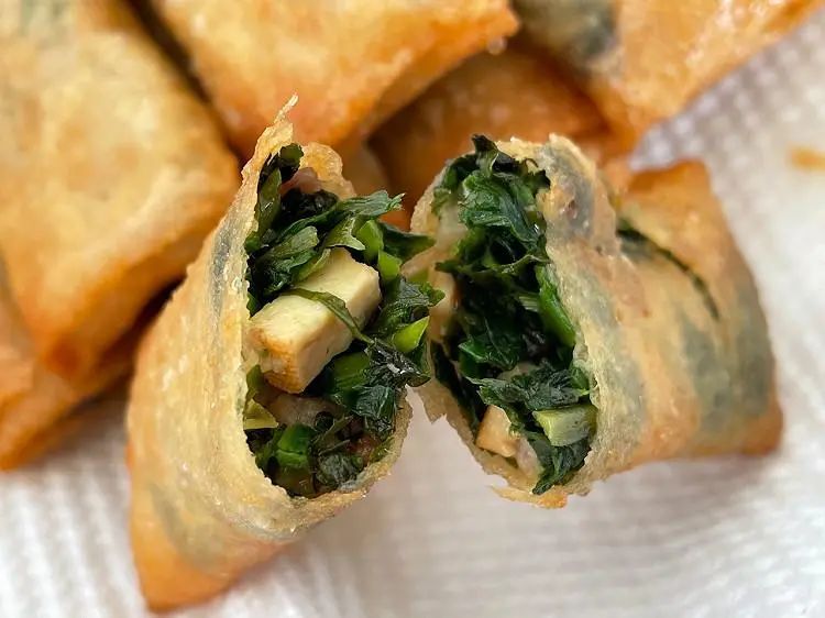 荠菜大馄饨,是上海囡囡从小吃到大的美味。荠菜独特的香气中和了鲜肉的油腻,配上爽滑的馄饨皮,成就上海春天最独特的鲜。02丨扬州—荠菜春卷