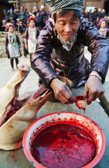 腊月里,在云南的寨子里转一转,就能听到此起彼伏的猪叫声——家家都在杀年猪、做生猪血。