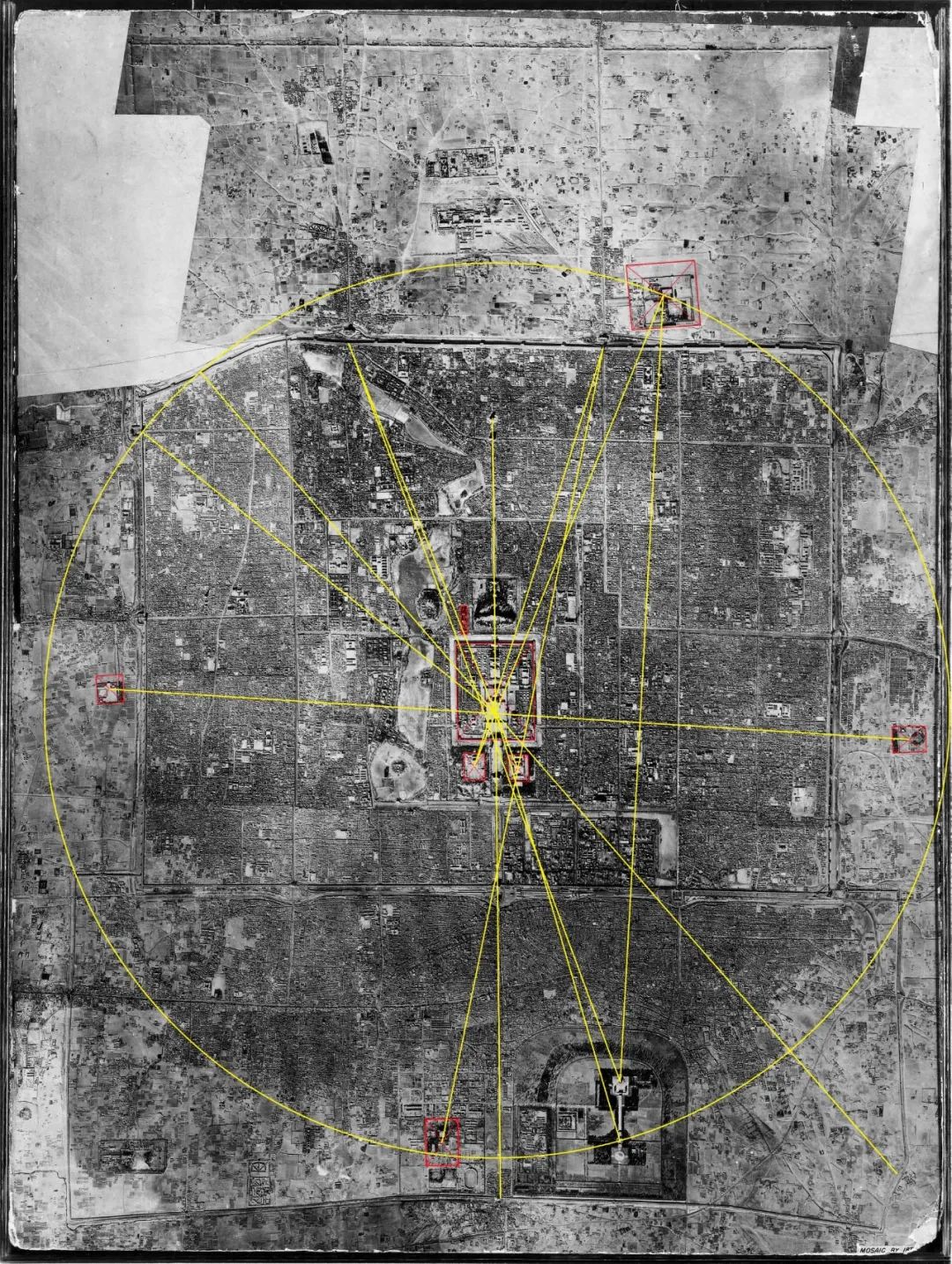 明北京城建筑连线分析总图1. 以德胜门定位的建筑连线