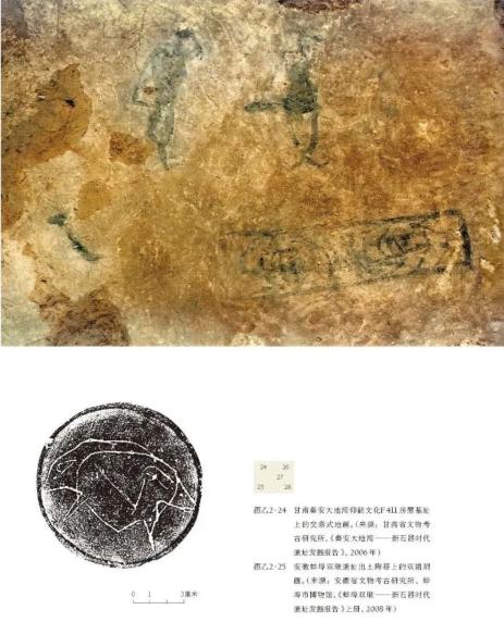 二里头二号宫殿大墓至南大门轴线分析图。(底图来源:中国社会科学院考古研究所二里头队,《河南偃师二里头二号宫殿遗址》,1983 年)冯时指出,辽宁朝阳牛河梁红山文化第 2地点1号冢4号墓( N2Z1M4)墓主人两腿膝部相叠交的葬式即如古文字的“交”字。类似的交泰图像于甘肃秦安大地湾新石器时代遗存所见地画也有发现,画中绘有男女二人,人之双胫叠交而呈“交”形,其表示阴阳交合以祈生育的主旨鲜明,说明交泰的本义乃在阐明阴阳之气的交通。此种图像可上溯至距今七千年的安徽蚌埠双墩遗址,其出土的陶器绘有同体二首方向反向的双猪造型,显然表现了雌雄交合、阴阳相生的观念。