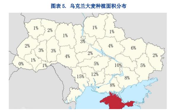小麦产区主要集中于南部与东部地区,顿涅茨克与卢甘斯克合计占比仅 9%。