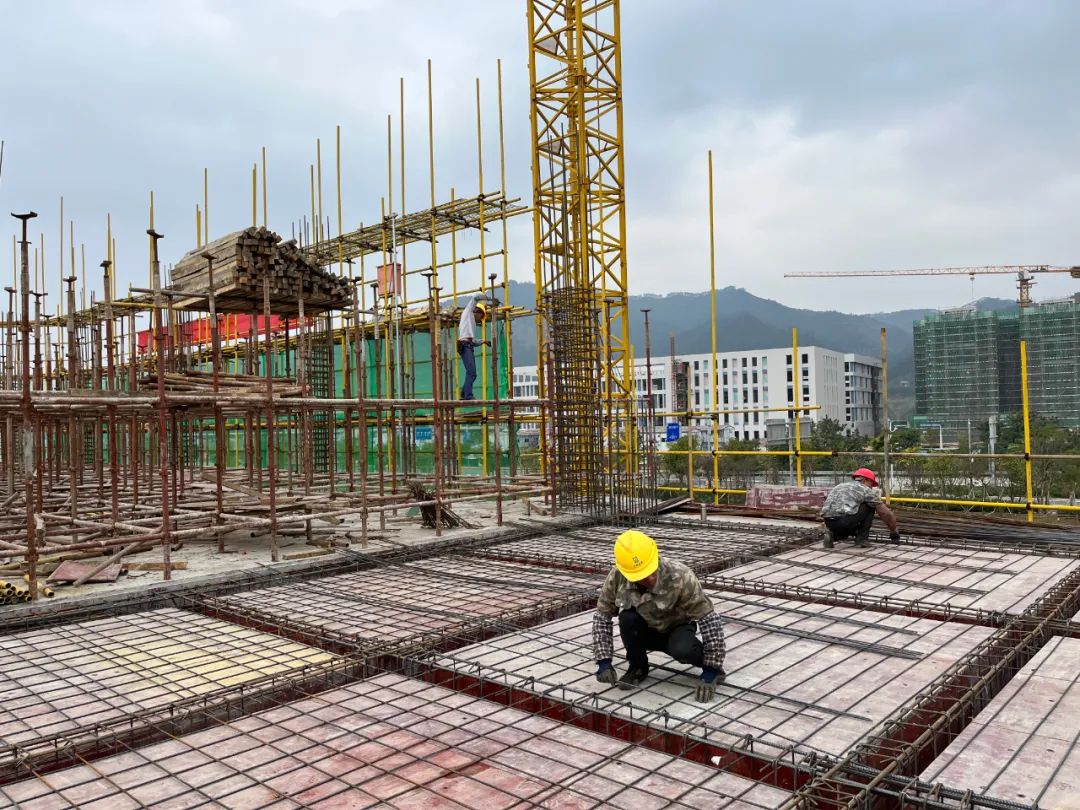 端州区创业孵化基地项目位于肇庆市端州区双龙产业园中心湖南侧。在项目现场,记者看到工人们正在忙碌着绑扎钢筋、搭建外排栅,大型吊塔也不断地传送着材料。施工现场热火朝天,目前已建至三层。