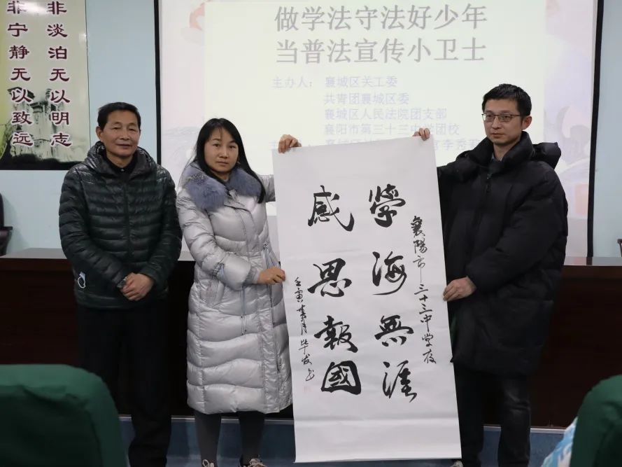 2月24日,襄城区法院团支部联合襄城区关工委和共青团襄城区委一起走进襄阳市第三十三中学,以“法治进校园 关爱下一代”为主题,为同学们上了一堂生动活泼的法治课。