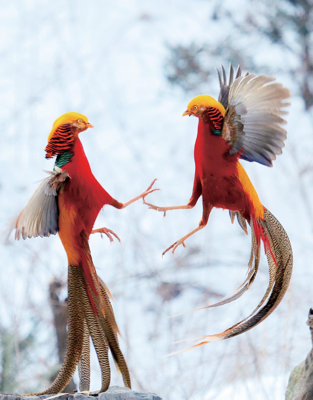 · 两只红腹锦鸡在雪中嬉戏,绚丽多彩的羽毛,在白雪的映衬下格外美丽...2月