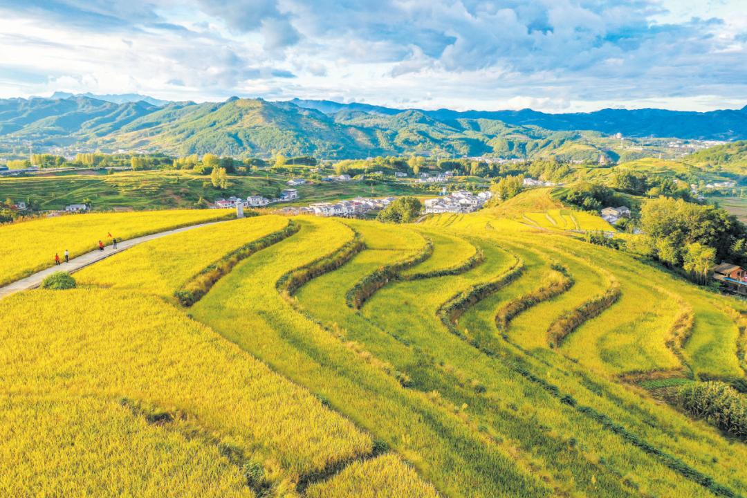 · 水稻成熟,成百上千亩梯田层层叠叠、绵延起伏,构成一幅绮丽壮观的景象。11月