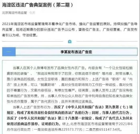 李诞最终被罚87万(图源:微博)不过,李诞因为代言Ubras广告被北京市海淀区市场监督管理局没收了李诞的“违法所得225573.77元”。22万,是当时李诞一条微博推广的价格。