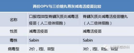 脊灰减毒活疫苗英文缩写为OPV。脊灰病毒有3个血清型即Ⅰ、Ⅱ、Ⅲ型。过去的OPV为三价疫苗(tOPV,糖丸剂型),也就是包含了脊灰病毒的三种血清型,脊灰疫苗的使用很好的控制了疾病的流行,全球自1999年后未检测到Ⅱ型脊灰野病毒株。所以,2016年5月,我国在常规免疫中停用tOPV,启用二价疫苗(bOPV,滴剂剂型)。